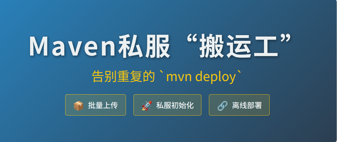 当需要将一个、十个、甚至上百个本地JAR包上传到公司新搭建的Maven私服(Nexus/Artifactory)时,一遍又一遍地复制、粘贴、修改这条长得令人发指的命令,是不是感觉自己的灵魂都在被抽空?