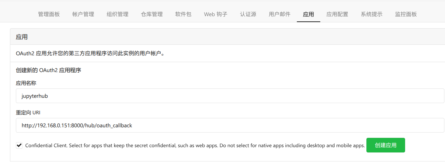 步骤 1: 在Gitea端创建OAuth2应用