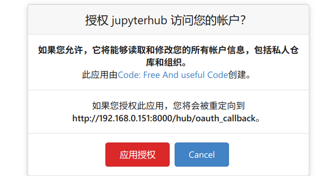 http://jupyterhub.your-company.com/hub/oauth_callback- 至关重要! 这里的域名必须是用户访问JupyterHub时使用的域名或IP,路径必须是