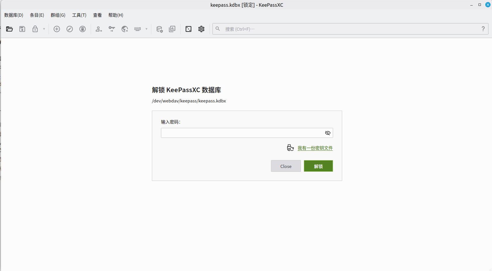 - 你的 KeePassXC 尚未退出,仍然在后台占用该密码库文件。