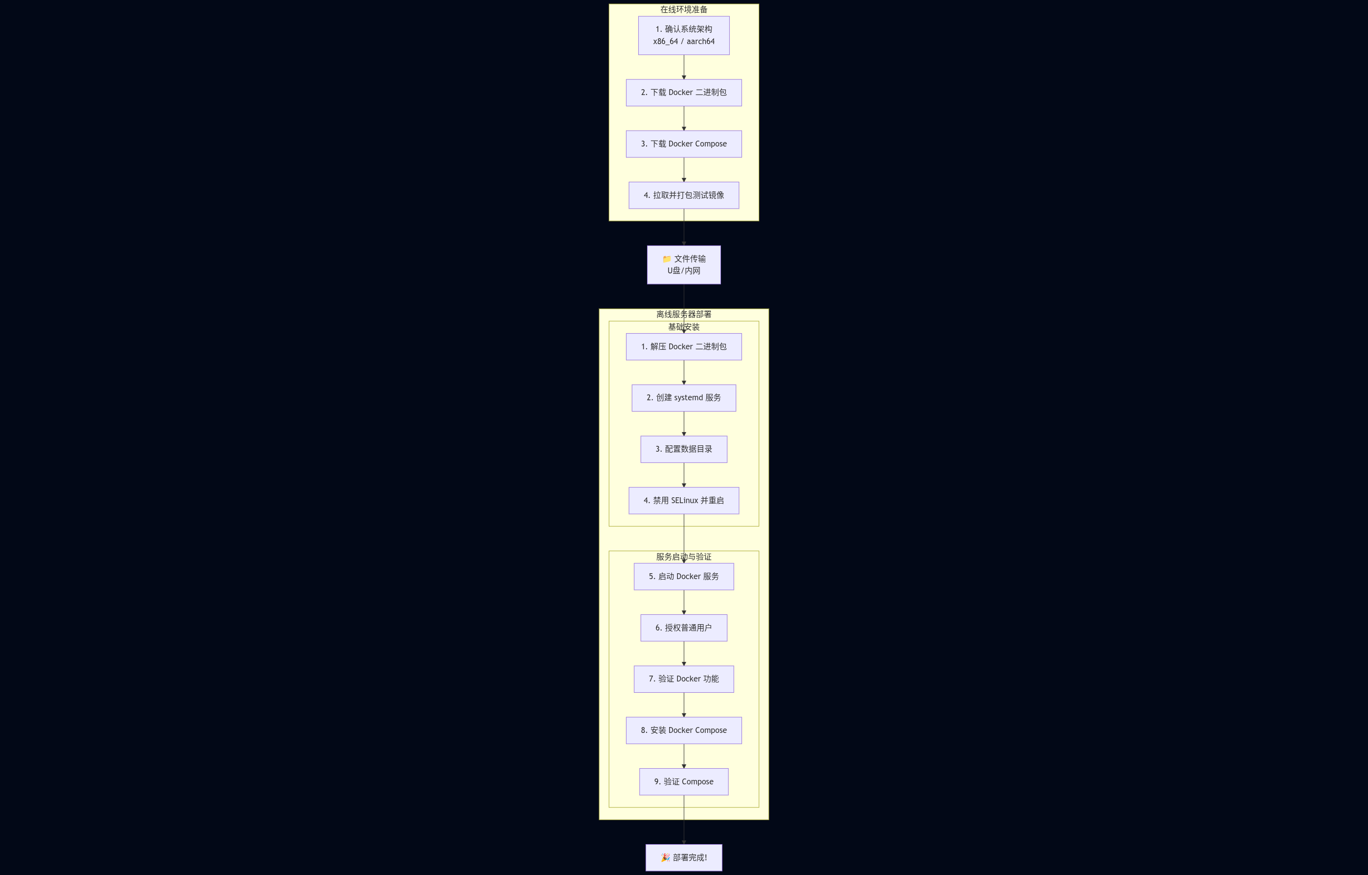通过采用官方二进制包的安装方式,我们成功绕开了离线环境中最令人头疼的依赖问题,实现了一次干净、稳定、高效的Docker及Docker Compose部署。并且通过合理配置用户权限,使得日常使用更加流畅安全。