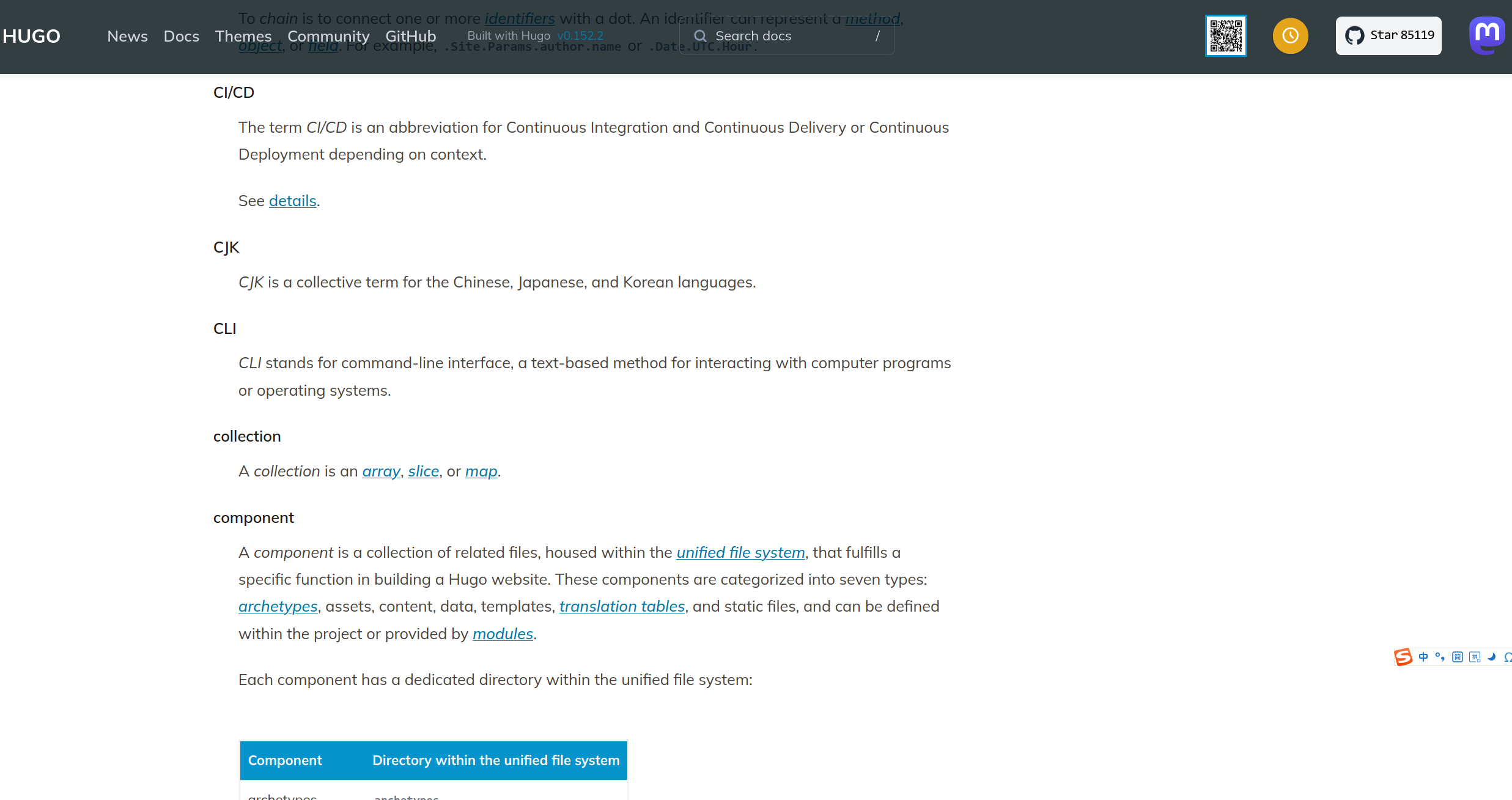 https://github.com/gohugoio/hugo - 核心优势:编译速度吊打全场(毫秒级);单文件安装,无需复杂的依赖管理。
