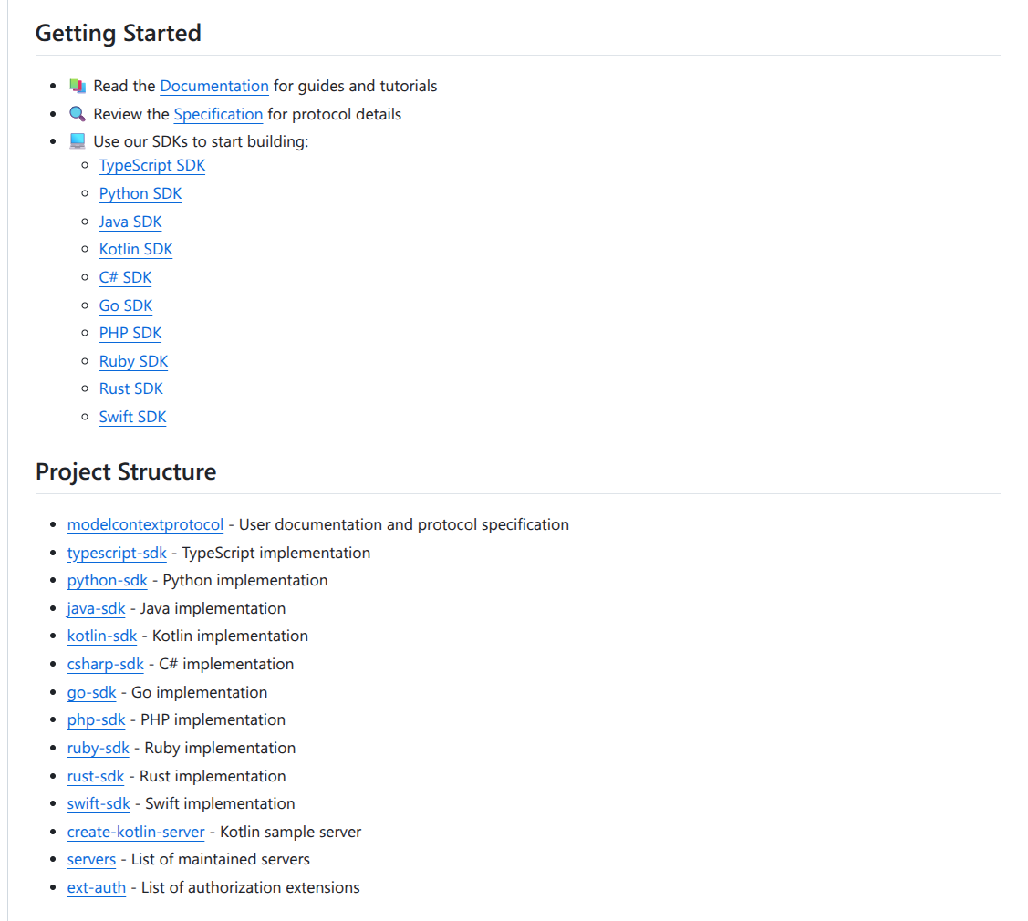 更多其他语言的 mcp sdk https://github.com/modelcontextprotocol