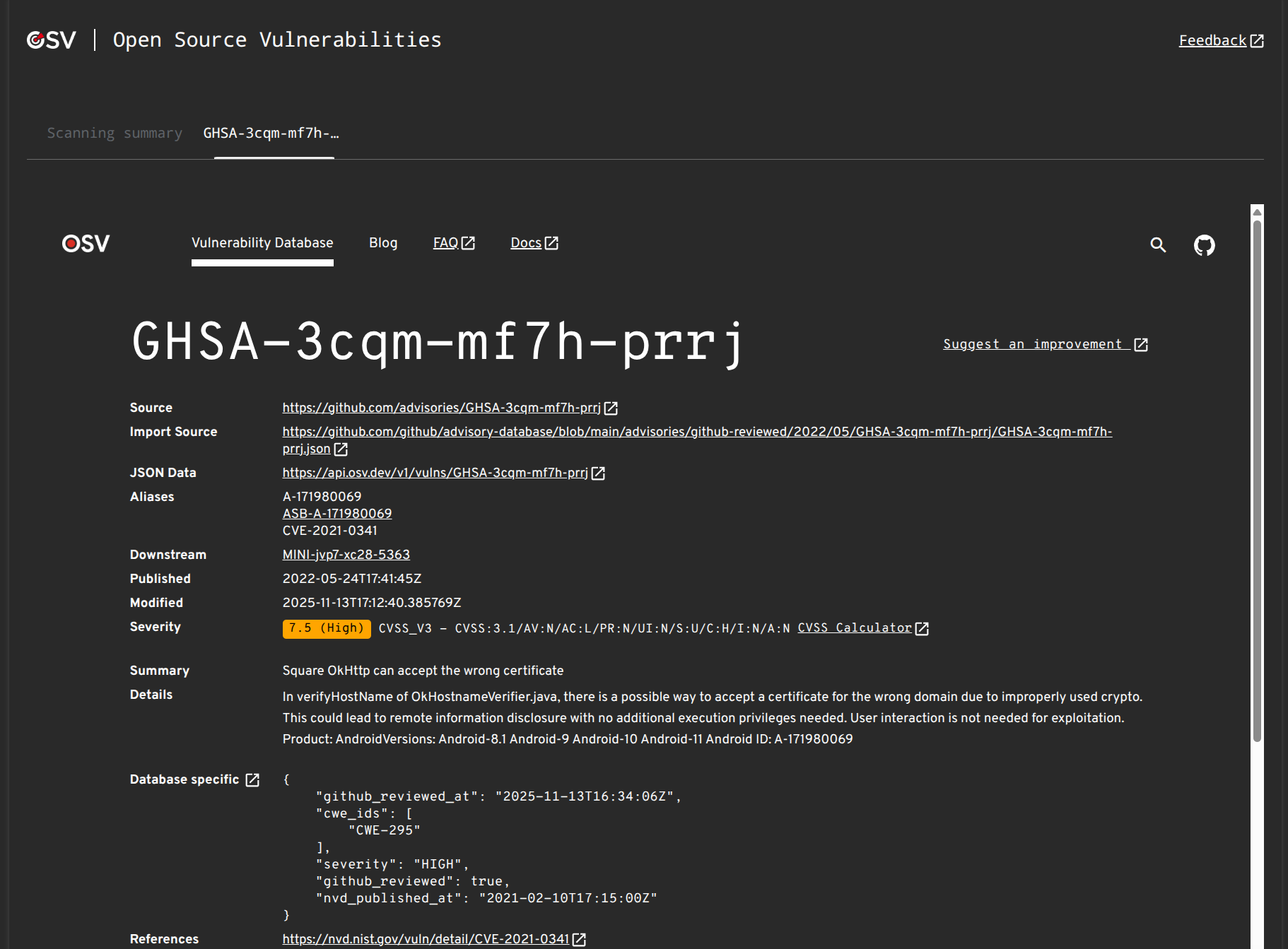 OSV 是一个以源码版本为核心的漏洞数据库,而不是传统的: