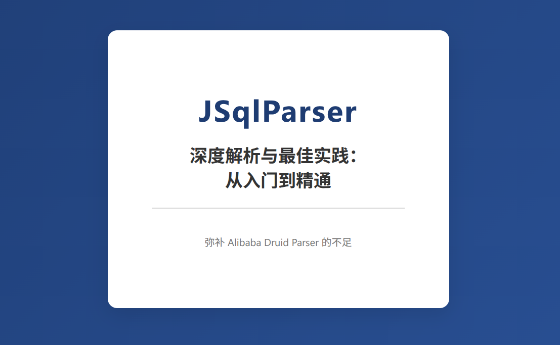 这时,我们就需要一个专业的 SQL 解析器。而在 Java 世界里,JSqlParser 无疑是其中最闪亮的明星之一。