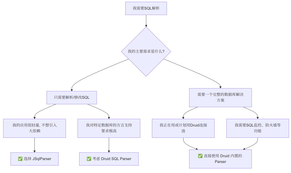 谈到 Java 世界的 SQL 解析,另一个无法绕开的名字就是 Alibaba Druid。Druid 不仅是一个强大的数据库连接池,其内置的 SQL Parser 也同样功能强大。那么,我们该如何选择呢?