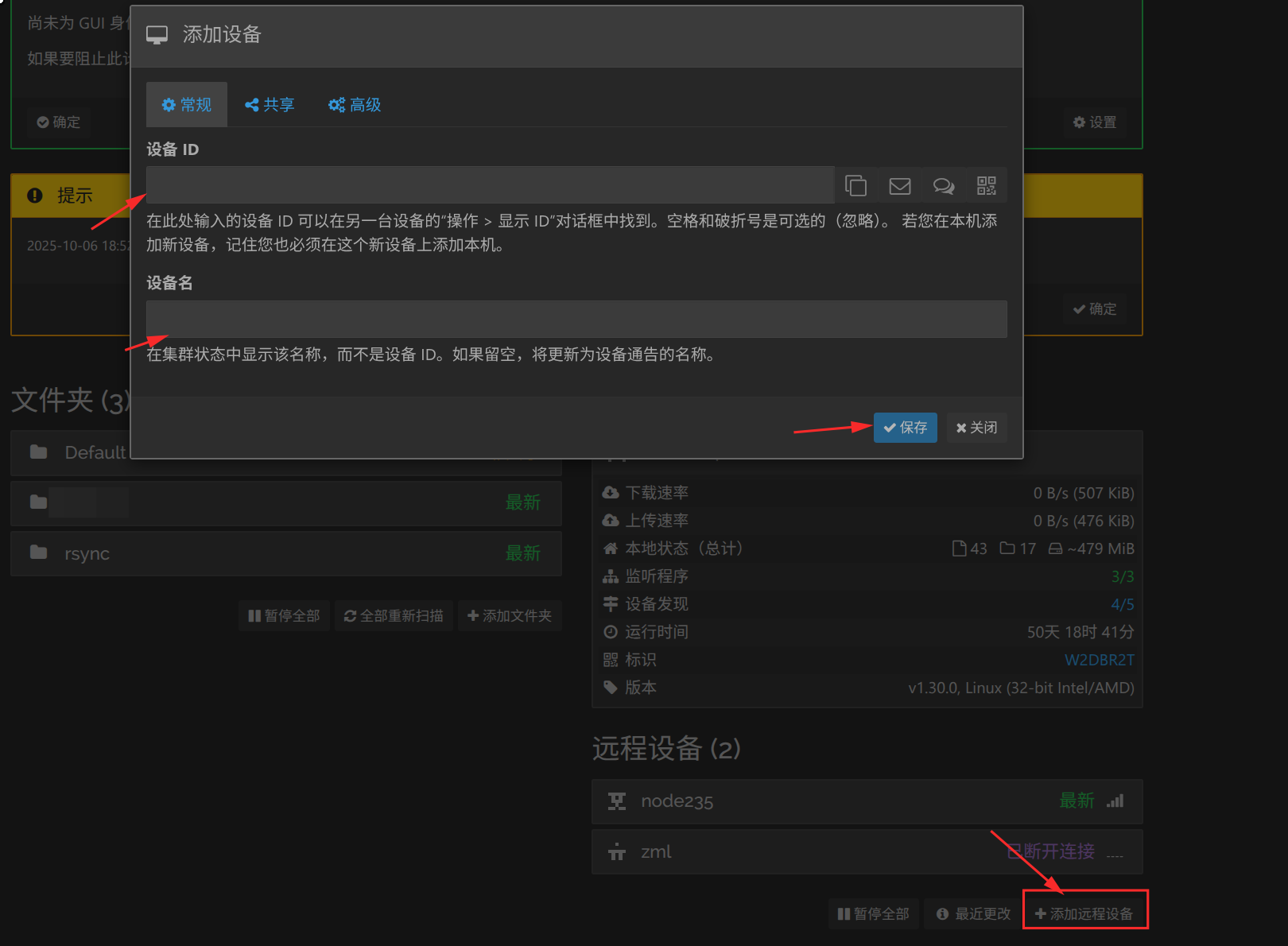 - 打开 Syncthing Web 界面(