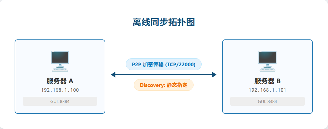 通过以上步骤,你已经成功构建了一个完全私有、不依赖公网、点对点加密的文件同步系统。无论是做数据库异地备份,还是应用代码分发,Syncthing 都是内网运维的得力助手。