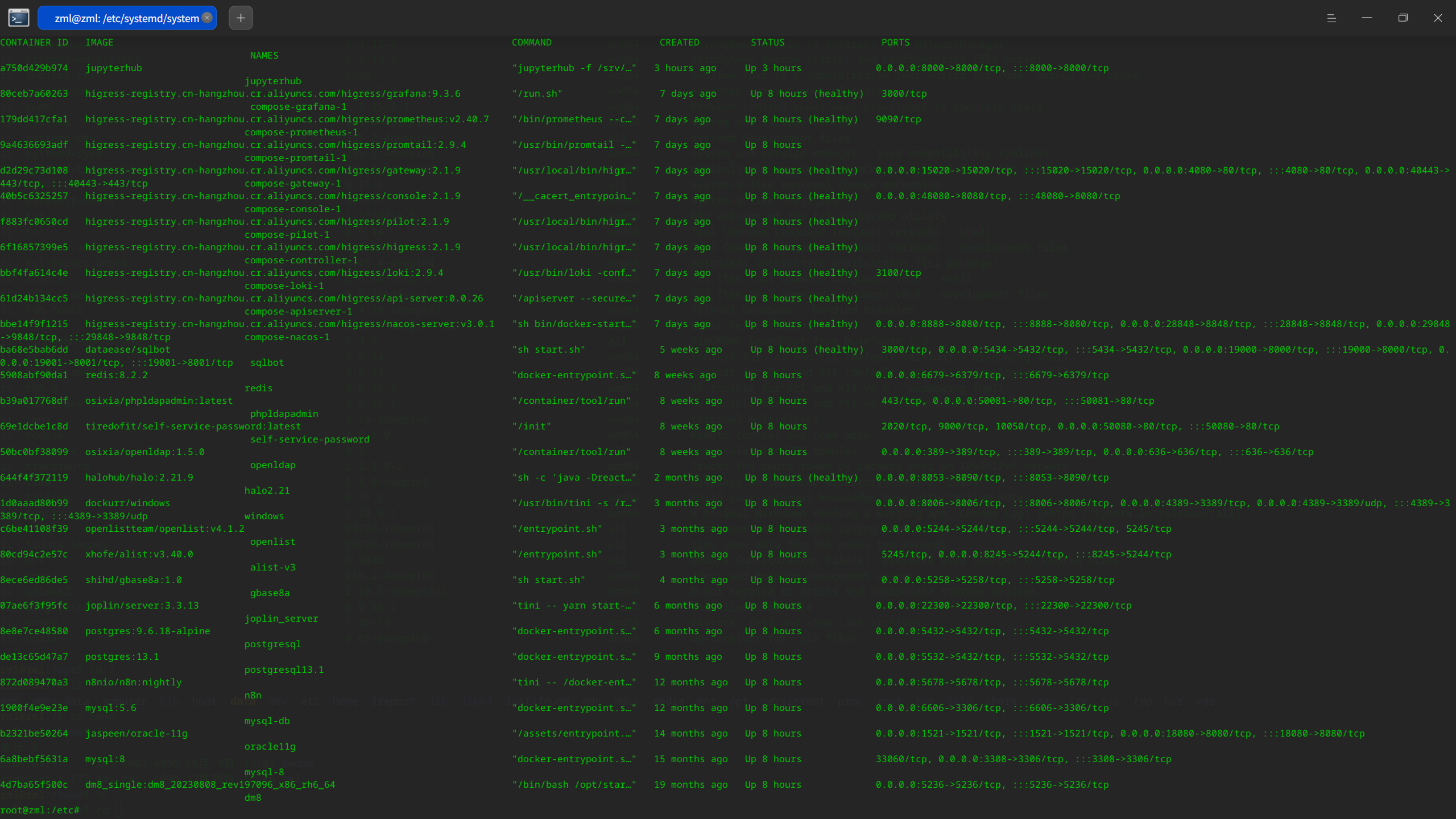 看看我的 docker ps 清单,这简直就是一个微型的“企业级数据中心”: