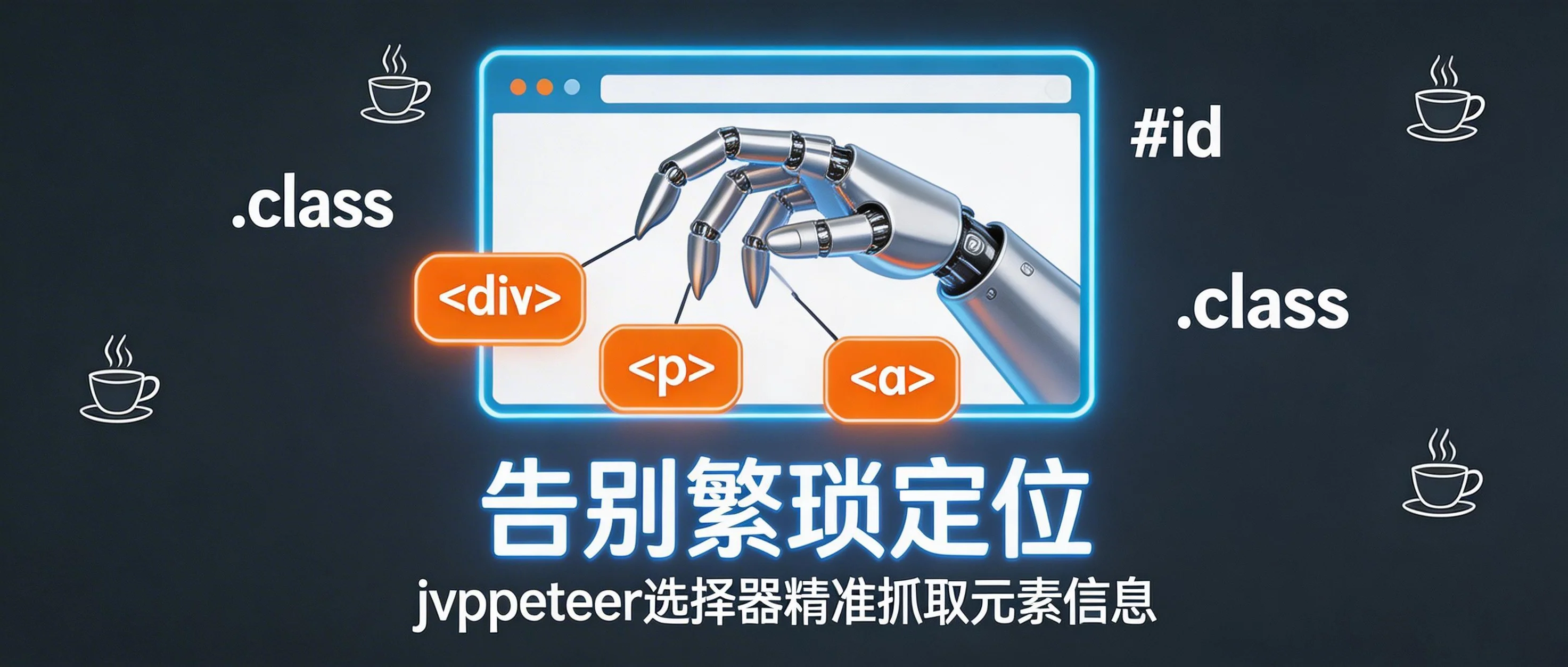 做 Java 爬虫或自动化测试,定位元素是基本功。今天聊聊 jvppeteer 里那些好用到飞起的选择器 API。做前端自动化或者写爬虫的朋友,对 Puppeteer 一定不陌生。但如果你的项目是 Java 技术栈,Node.js 那套用不上怎么办?jvppeteer 就是答案——它是 Puppet
